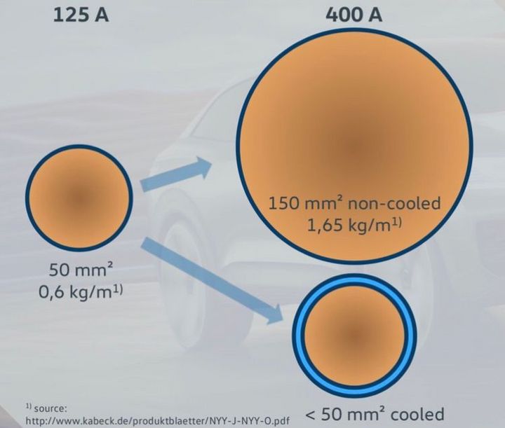 所以要想用大功率充電,也就以下幾個辦法了:一是進步電壓,堅持電流不添加,可是這個只能在必定的范圍內做,并且牽涉到汽車渠道的嚴峻修改,一起還有許多安全隱患。二是選用大電纜,讓一個機器人或許機械設備來幫你抬電纜,這個辦法的缺陷不必多說了,貴或許笨。第三,就是今日的主題,選用冷卻的辦法來運用小截面電纜來完成充電。好了,扯了半響的初中物理,好多人煩了吧,下面來點干貨。
